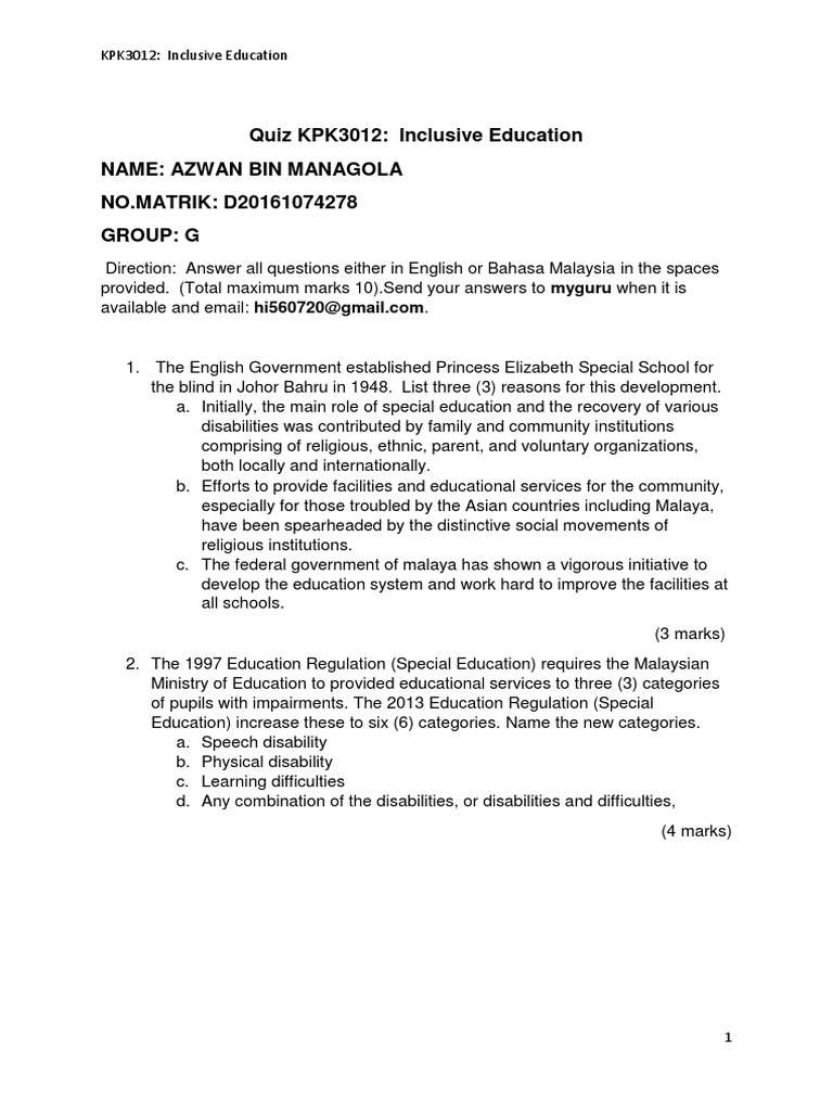 Students in malaysia receive education from 7 to 18 years. The quality of educators is a major factor that greatly influences the quality of education in a country. With this letter, you are ready to get on a plane towards malaysia, but before you send your university the details of your flight, the immigration department will also issue you a special pass. There are three types of special education programmes available for children with sen under the ministry of education malaysia, special schools, integrated and. Currently, the university of malaya ranks 59th in the qs top universities ranking, but language.