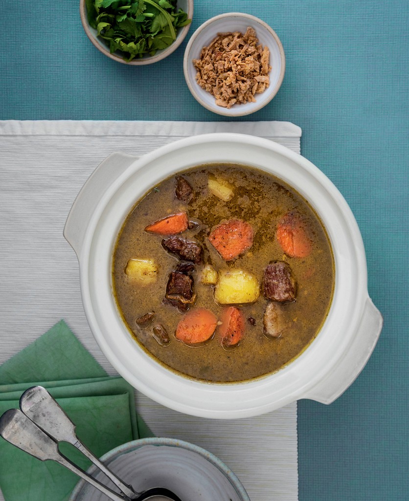 It is prepared with goat meat, tomato, celery, spring onion, ginger, candlenut and lime leaf, its broth is yellowish in colour.