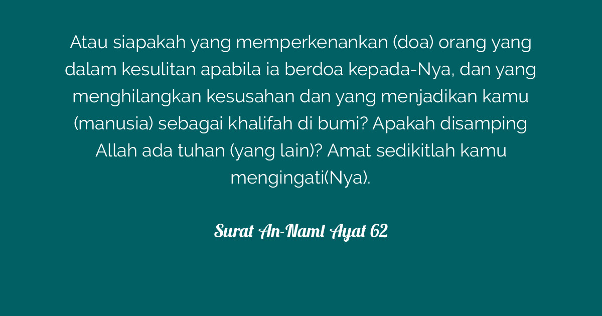 Surah Al Naml Ayat 62 : Surat An Naml Ayat 62 Tentang Doa Dalam Kesulitan Dikabulkan : Copy advanced copy tafsirs share quranreflect bookmark.
